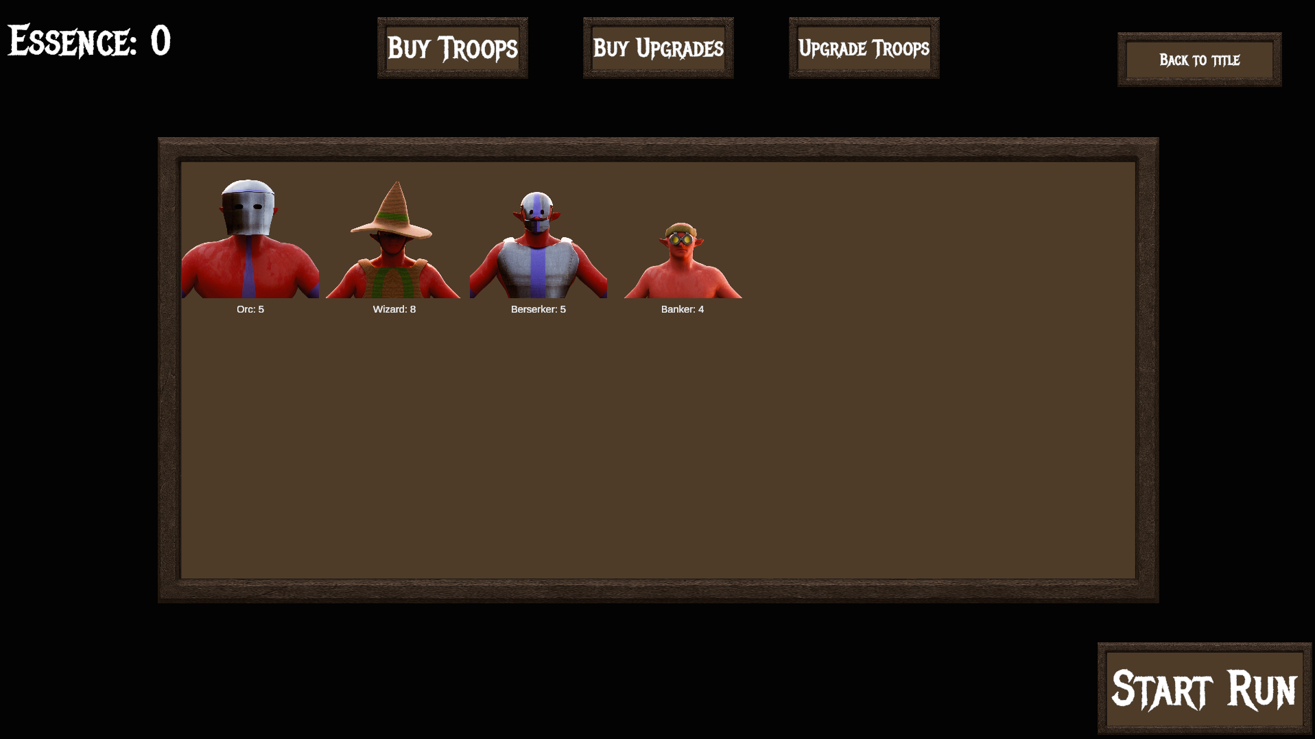 Before actually starting a run you are able to buy or upgrade your own troops using a currency called Essence.
